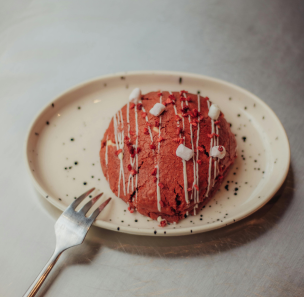 A soft red velvet cookies and white chocolate chips with cream cheese filling in the middle